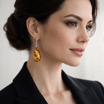 náušnice s menším jantárom ku každodennému outfitu • matné striebro