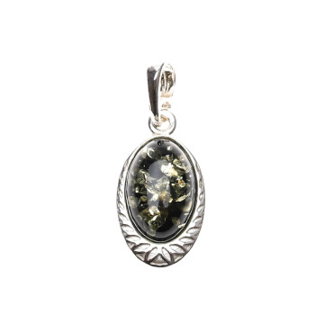 Strieborný prívesok so zeleným jantárom ROMANTIC