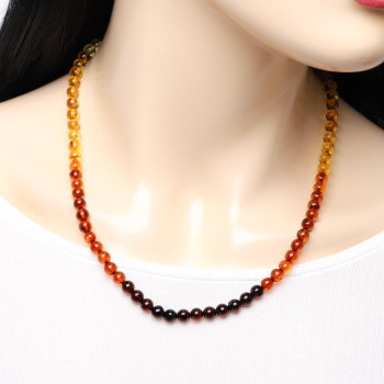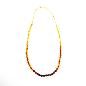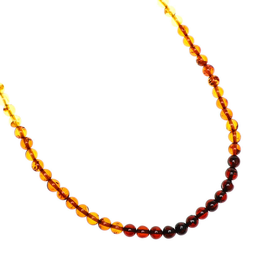 Jantárový náhrdelník VENUS si ihneď zamilujete pre jeho príjemnú hladkú textúru a jemný dizajn. Vďaka svojmu prevedeniu je maximálne komfortný pri nosení. S týmto skvostom bude každý váš outfit výnimočný a pútavý. Šperk, ktorý rozhodne musí mať každá milovníčka jantáru. Dokonale zabrúsený jantár do tvaru guličky s príjemným hladkým povrchom robí z tohoto šperku obľúbený a žiadaný klenot. Najobľúbenejší koňakový odtieň sa nežne prelína s višňovým a žltým jantárom. Farebnosť umožní výbornú kombinovateľnosť náhrdelníka s inými jantárovými doplnkami. Náhrdelník s dĺžkou 45cm má šrubovacie zapínanie zo syntetického materiálu vo farbe jantáru, ktoré nenarúša celkový dizajn šperku. Je pevné a udrží váš náhrdelník bezpečne zapnutý. Priemer jantárovej guličky 0,6cm.