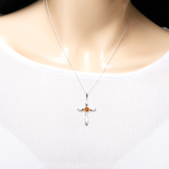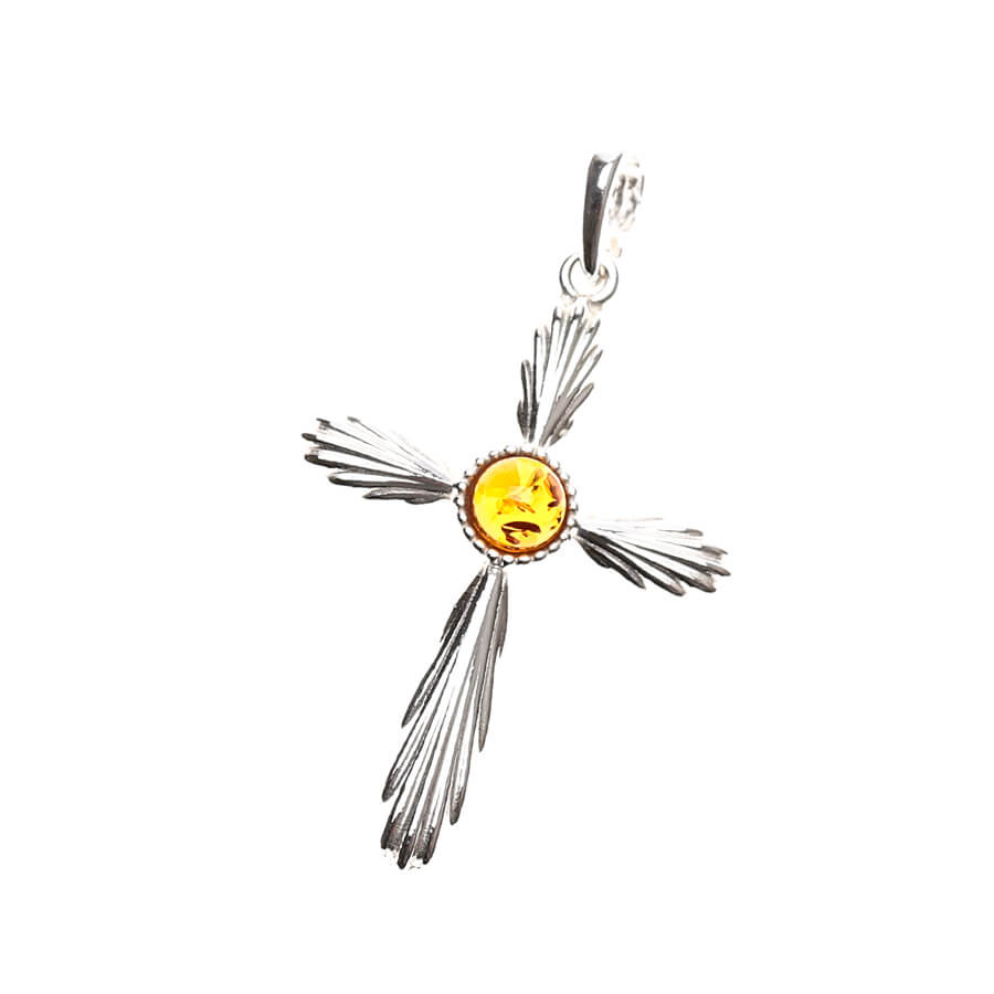 Spojenie duchovnej sily a prírodnej elegancie. Tento jedinečný prívesok v tvare krížika je zdobený pravým baltským jantárom v obľúbenom koňakovom odtieni, kameňom so storočnou históriou a výnimočnou krásou.