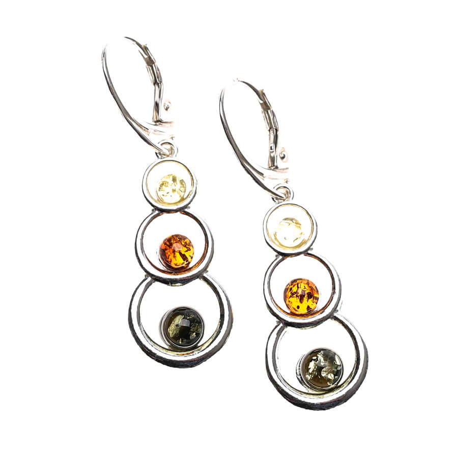 Tieto dámske strieborné visiace náušnice s jantárom ELORIANA sú dokonalým spojením jemnosti a výraznej elegancie. Teplý koňakový odtieň pravého jantáru krásne kontrastuje s leskom striebra, zeleným a žltým jantárom. Spolu tak vytvárajú šperk, ktorý zaujme na prvý pohľad, no zároveň pôsobí vkusne a nadčasovo.