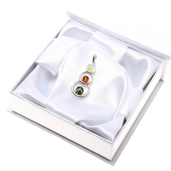 Tento krásny strieborný prívesok s jantárom ELORIANA jedokonalým spojením jemnosti a výraznej elegancie. Teplý koňakový odtieň pravého jantáru krásne kontrastuje s leskom striebra, zeleným a žltým jantárom. Spolu tak vytvárajú šperk, ktorý zaujme na prvý pohľad, no zároveň pôsobí vkusne a nadčasovo.