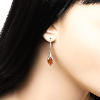 Tieto dámske strieborné visiace náušnice s jantárom ZARANIA sú dokonalým spojením jemnosti a výraznej elegancie. Teplý koňakový odtieň pravého jantáru krásne kontrastuje s leskom striebra a vytvára šperk, ktorý zaujme na prvý pohľad, no zároveň pôsobí vkusne a nadčasovo.