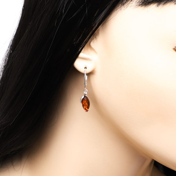 Tieto dámske strieborné visiace náušnice s jantárom ZORANA sú dokonalým spojením jemnosti a výraznej elegancie. Teplý koňakový odtieň pravého jantáru krásne kontrastuje s leskom striebra a vytvára šperk, ktorý zaujme na prvý pohľad, no zároveň pôsobí vkusne a nadčasovo.