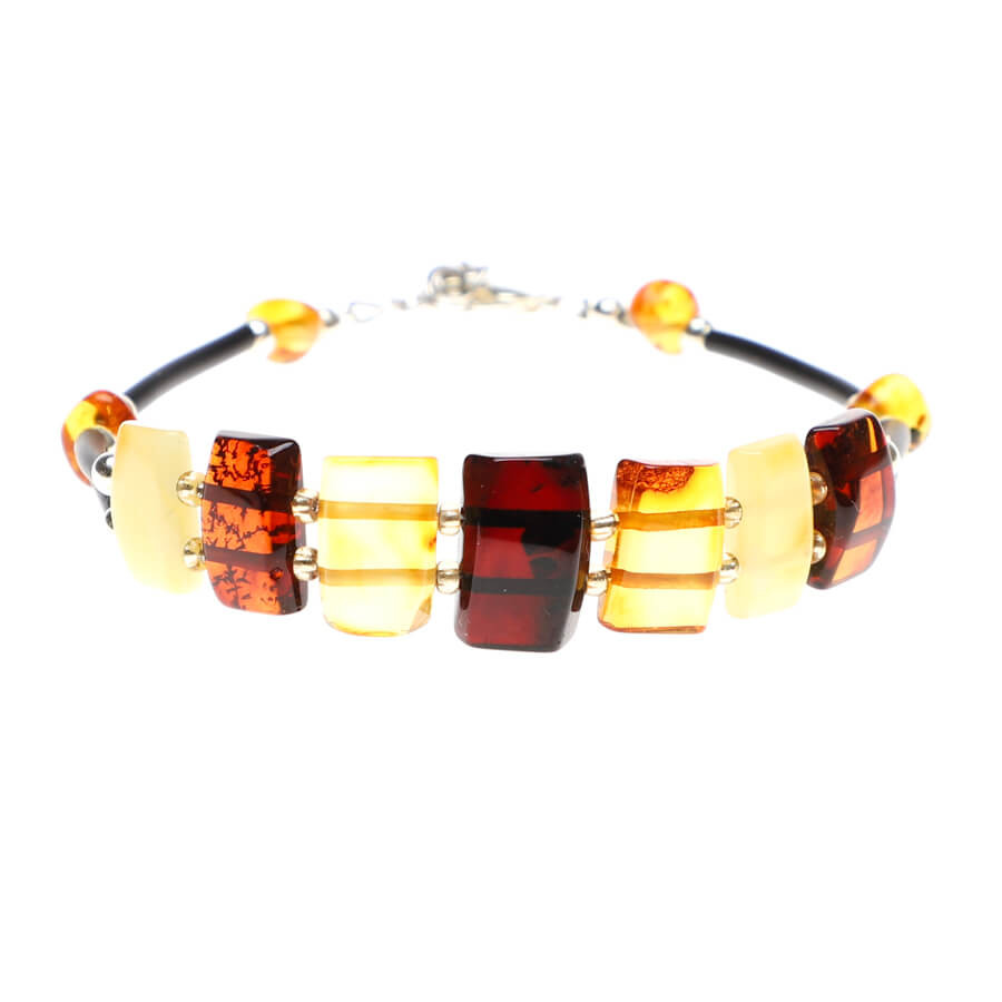 Jantárový náramok CHAMON je výrazný a elegantný šperk, ktorý zaujme svojím farebným prevedením a dominantným jantárom. Kombinácia rôznych odtieňov jantáru vytvára jedinečný vizuálny efekt, vďaka ktorému je každý náramok originálom. Zdobí ho koňakový, žltý aj višňový jantár.