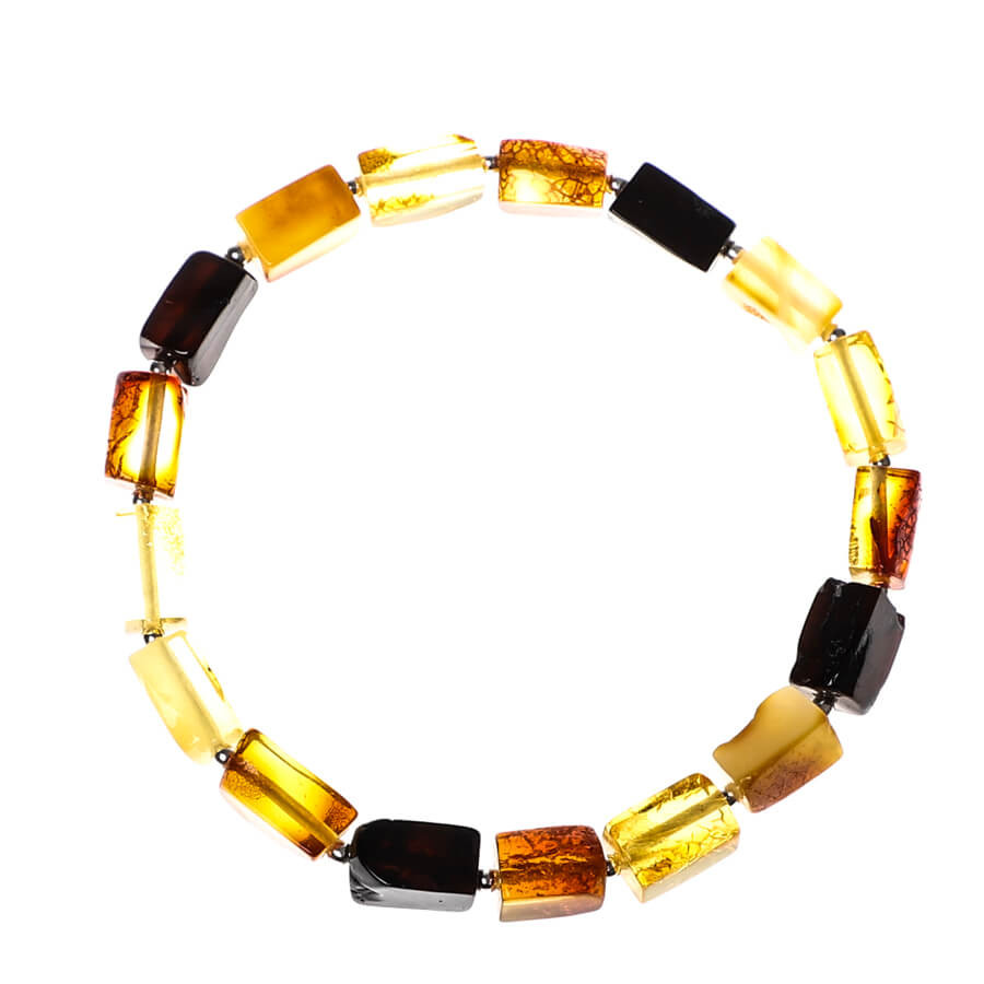 Objavte nadčasovú eleganciu v podobe jantárového náramku NELSON, ktorý spája prirodzenú krásu prírodného jantáru s moderným dizajnom. Každý kúsok je jedinečný – ručne leštené jantárové kamene vynikajú svojimi teplými medovými tónmi, jemnou priehľadnosťou a charakteristickou štruktúrou, ktorá dodáva náramku osobitý šarm. Náramok dopĺňa žltý a višňový jantár striedavo umiestnený na flexibilnej gumičke. Vďaka čomu je veľkosť náramku mierne flexibilná v rozmedzí od 18–21cm.