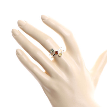 Farebný strieborný prsteň s prírodným jantárom v žltom, zelenom a koňakovom odtieni je výrazným, no elegantným šperkom, ktorý zaujme na prvý pohľad. Kombinácia viacerých farebných tónov jantáru vytvára jedinečný dizajn, vďaka ktorému je každý prsteň originál.