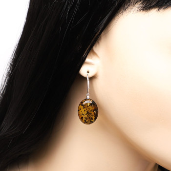 Tieto dámske strieborné visiace náušnice s jantárom AMBER sú dokonalým spojením jemnosti a výraznej elegancie. Iskrivý zelený odtieň pravého jantáru krásne kontrastuje s leskom striebra a vytvára šperk, ktorý zaujme na prvý pohľad, no zároveň pôsobí vkusne a nadčasovo.