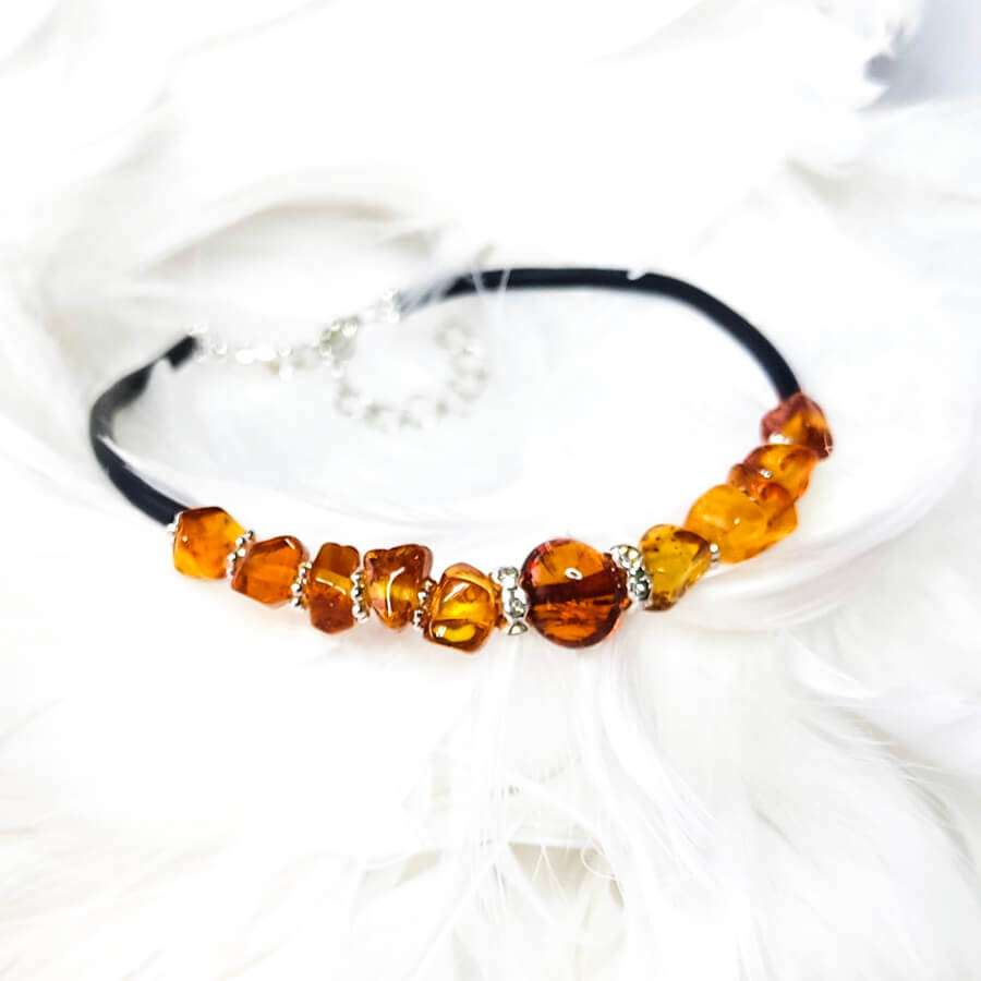 Tento elegantný doplnok pôsobí vkusne, luxusne a zároveň príjemne prirodzene. Vďaka kvalitnému spracovaniu a nastaviteľnej retiazke sa náramok dokonale prispôsobí zápästiu a je vhodný na celodenné nosenie. Harmonická kombinácia farieb jantáru dodáva náramku hlboký, hrejivý charakter, ktorý vynikne pri každom outfite – či už ide o bežný deň alebo špeciálnu príležitosť. Čierna matná kombinácia so šperkárskym kovom v striebornom odtieni dáva krásne vyniknúť jantárovej farebnosti. Náramok si môžete prispôsobiť od dĺžky 18cm až po 23cm. Takže sadne komfortne naozaj každej žene.