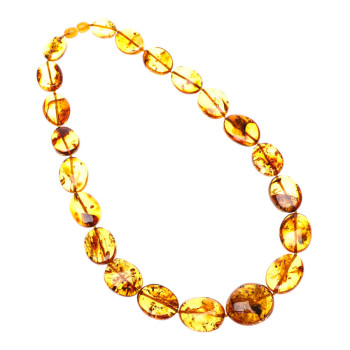 Náhrdelník je v odtieňoch aromatického koňaku s neopakovateľnou iskrou. Dĺžka náhrdelníka je 50cm. Zapínanie je zo syntetického materiálu v odtieni jantáru, tak aby nenarúšalo dizajn šperku. Najväčší jantár má rozmer až 2,5×2,2cm.