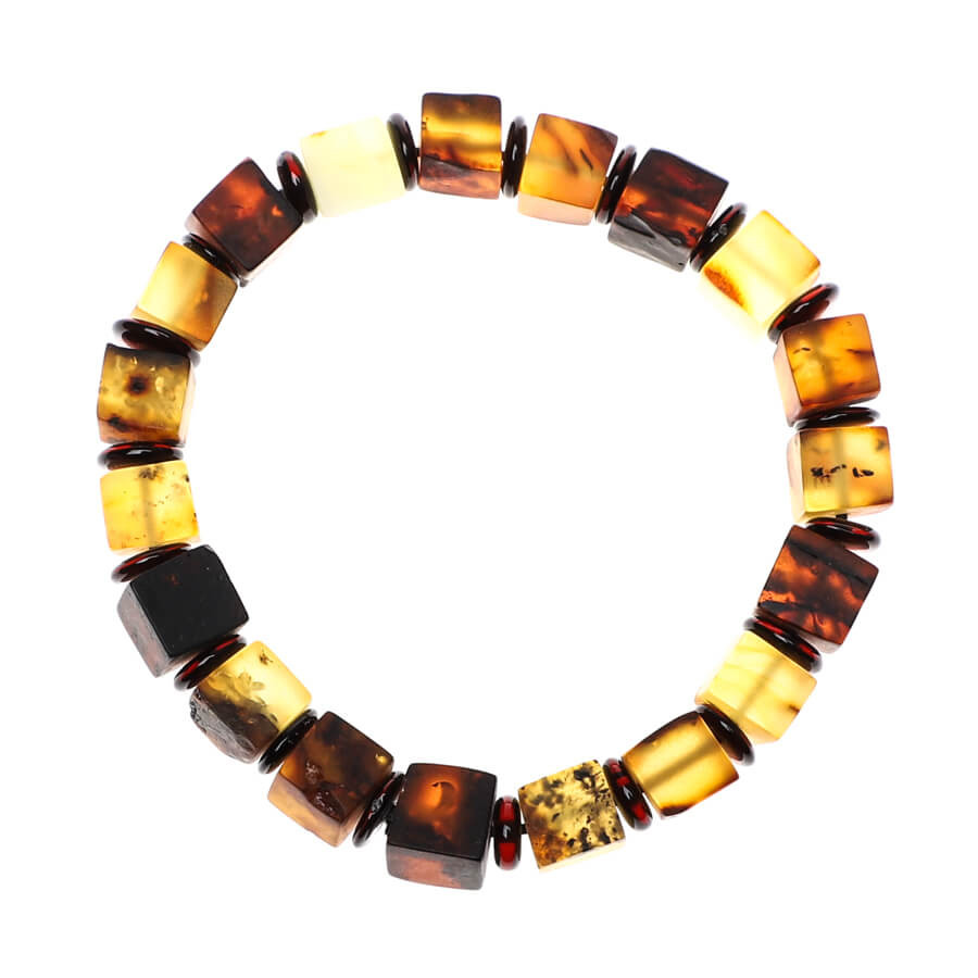 Amber Spartacus je výnimočný pánsky náramok z pravého prírodného jantáru v žltom a koňakovom odtieni. Kocky jantáru vytvárajú výrazný, moderný a zároveň nadčasový dizajn, ktorý zvýrazní mužskú silu, charakter a výnimočný štýl. Každý kus je originál ručne vytvorený z prírodných jantárových kameňov.