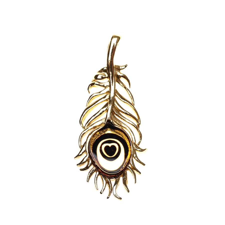 Tvar pávích pier odkazuje na krásu, ochranu a hrdosť, zatiaľ čo teplý odtieň jantáru dodáva šmrnc a jedinečnosť. Vďaka detailnému spracovaniu sa prívesok stáva ideálnym darčekom pre milovníkov prírody aj výnimočných šperkov.