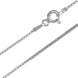Zaujímavá strieborná retiazka o rýdzosti 925/1000 s moderným tvarom pospájaných kociek. retiazka s dĺžkou 55cm je hrubá 0,08cm. Zapínanie je na karabínku pre bezpečné nosenie. Retiazka je svojím dizajnom vhodná k prívesku, ktorý na nej krásne vynikne.