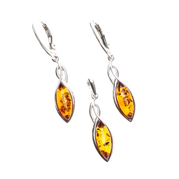 Jantár v sebe nesie tisícročnú krásu a vzácnosť Zeme. Jeho zlatisté odtiene sú ako stopy času – a práve preto sa stal symbolom ženskej sily, pokoja a harmónie. V kombinácii s kvalitným striebrom rýdzosti 925 vznikajú kúsky, ktoré nevyjdú z módy. Šperky ELISA zdobí jantár v odtieni aromatického koňaku precízne osadeného do hladkého striebra. Náušnice s dĺžkou 4,2cm majú zapínanie na dámsky patent pre bezpečné nosenie. Prívesok v rovnakom dizajne má dĺžku 3,2cm.