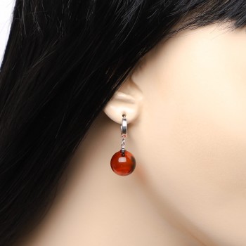 Zvýraznite vašu výnimočnosť jantárovou žiarou! Visiace náušnice AMBERA zdobí jantár vo krásnom koňakovom odtieni. Jeho odlesky úžasne rozjasnia tvár a dodajú iskru. Hladké línie striebra v tvare kruhu, tvoria módne zapínanie náušníc. Priemer samotného jantáru je až 1,2cm. Náušnice sú výrazné, komfortné a príjemne sa nosia.